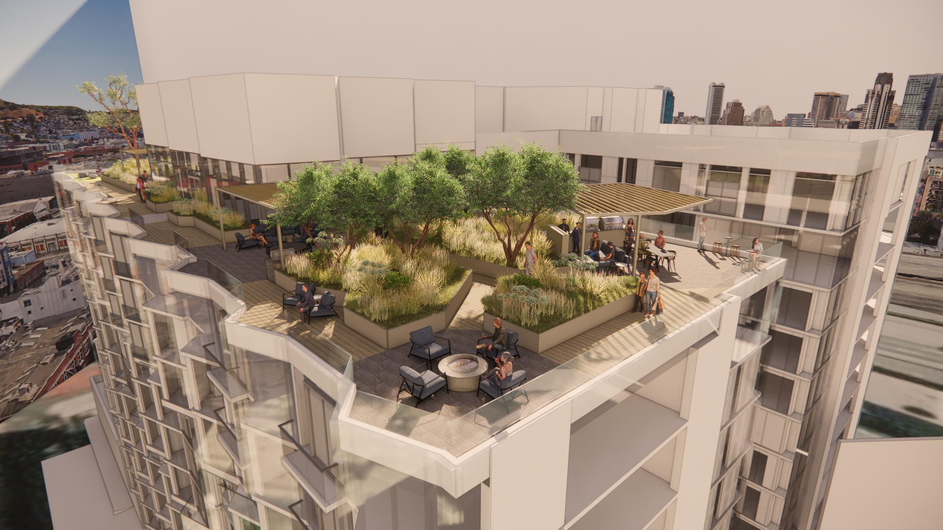 The development at 555 Bryant features over 500 market-rate apartments, rooftop amenities on the 16th floor, and panoramic views of the San Francisco skyline, Bay Bridge, Mission Bay, and surrounding neighborhoods. The building’s modern infrastructure supports high-density residential living within one of the city’s most dynamic districts.