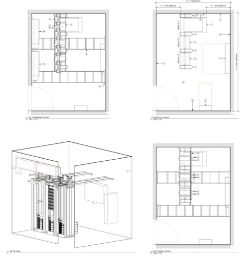The examples below reflect how MDC approaches every project using BIM-based coordination, standards-driven planning, and installation-ready documentation scaling from typical MDF/IDF rooms to complex, high-density private data centers.
